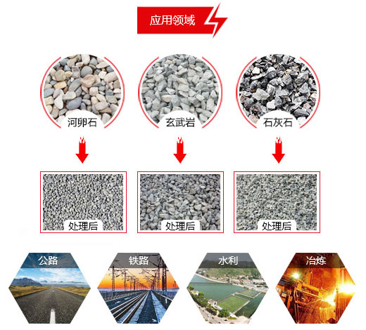 【處理物料】: 河卵石、方解石、花崗巖、石英石、混凝土、白云石、青石、鐵礦石、石灰石、鐵礦石等。