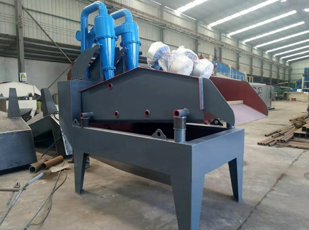 經(jīng)由洗砂機處理后的砂水混合物被砂泵輸送到離心分離器,分級濃縮后的細砂經(jīng)沉砂嘴提供給脫水篩,經(jīng)脫水后,細砂與水有效分離,少量細砂、泥等經(jīng)返料箱再回到清洗槽,清洗槽液面過高時,經(jīng)出料口排出。