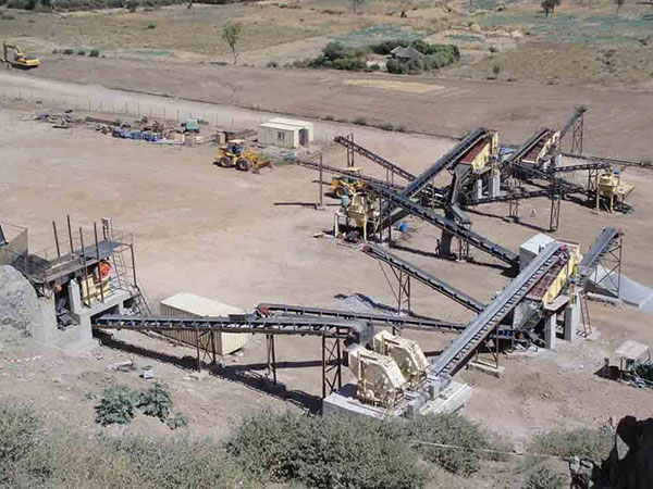 首先,大塊石料經(jīng)料倉由振動(dòng)給料機(jī)均勻地送進(jìn)鄂式破碎機(jī)進(jìn)行粗碎,粗碎后的石料由皮帶輸送機(jī)送到反擊式破碎機(jī)進(jìn)行進(jìn)一步破碎。